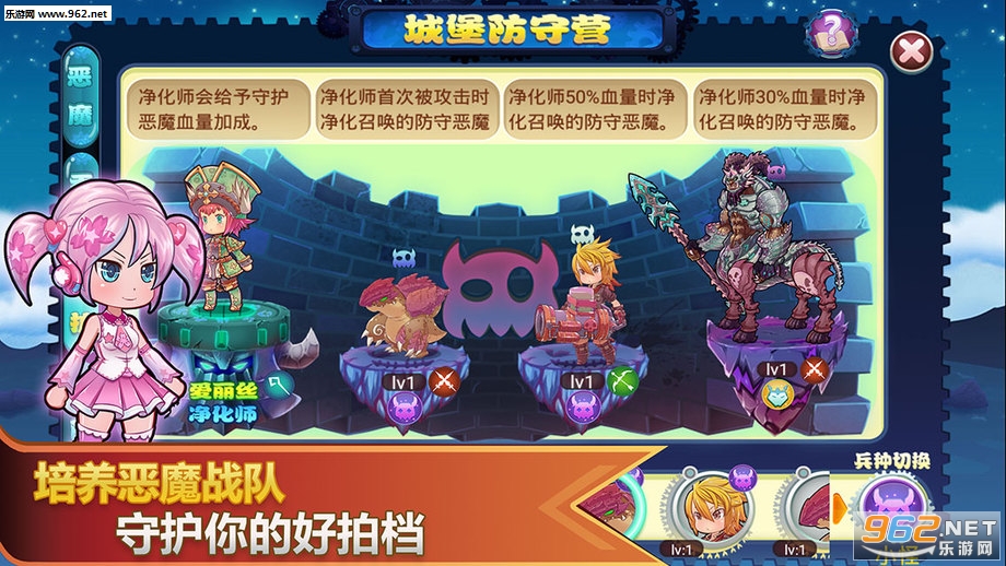 *恶魔养成:玩家培养自己的恶魔战队,用于保护自己的净化师以及布阵防御别的玩家的攻击。