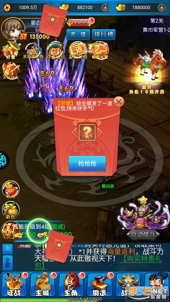 一款放置类挂机回合手游,招募更多的强力武将 升级你的战宠装备,强化你的阵法核心,统御你的骑兵邑从,去征战吧!