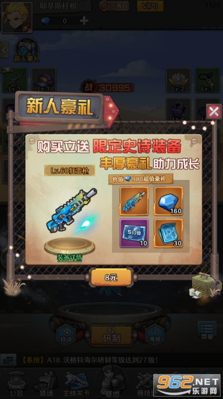 ★新人8元豪礼送60级橙色武器,助您前期一臂之力!
