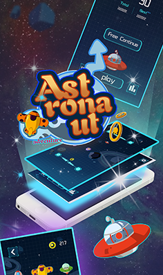 《ASTRONAUT》是一款可爱的休闲游戏,点击UFO来控制方向轨道。不要触碰怪物和陨石。收集硬币来解锁新的角色。