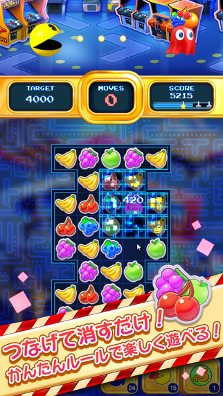 《吃豆人迷宫巡回》是迎来35周年生日的吃豆人的新作三消游戏。同样三个以上的水果就能够消除的简单操作。如果水果排列的好的话就会出现像素人,与以前可爱的状态登场。以新形式再现以前熟悉的角色。