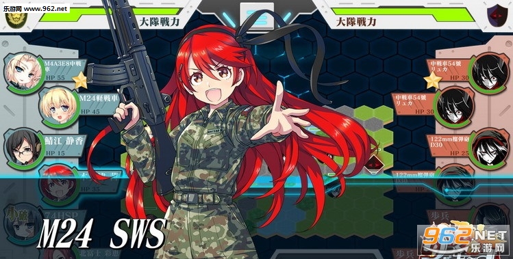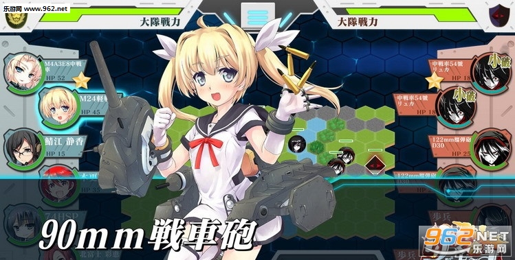 舰娘里有的陆自娘都有,建造、跑图、任务、图鉴什么的一个都不能少,而至于具体的战斗方式更加类似于 DMM 的 Shooting Girl 这款游戏,战斗开始时陆自娘和岩浆军各自有歌大本营,玩家需要选择好出战阵型,武器娘就会出现在地图上,游戏采用回合制,玩家可以选择手动操作武器娘按照自己的策略作战,也可以选择自动交战,让电脑迅速完成交战任务。和舰娘的作战模式相同,陆自娘作战开始会自动排除侦察部队返回侦查效果,就像舰娘战斗开始时的舰载机侦查一样。而陆自娘还可以要求陆自航空兵进行空中支援打击。