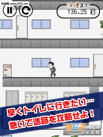 《快点去厕所》是一款日系奇葩向横版动作休闲手游,玩法非常恶趣味,主角是一个憋尿西装男,玩家要控制他早点找到厕所,一路上有诸多障碍与危险,要帮助他顺利躲过,早日解脱!