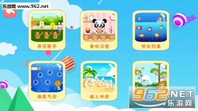 3、趣味互动游戏,钓鱼、种花、汉堡店、冲浪等汉字互动小游戏,让小朋友在游戏中快乐的学习,培养孩子的学习兴趣。