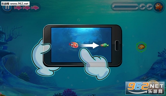 手指在屏幕上滑动移动小丑鱼吃掉其他小鱼