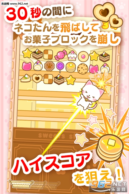 《猫咪的点心破坏》是是一款日系风格的闯关小游戏,来自日本Qmax Inc.推出的最新作品,以可爱的喵星人为主角,围绕美食元素展开,为了获得自己的美味而战斗,破坏那些方块让美食释放,超甜美的画风,适合女性玩家。