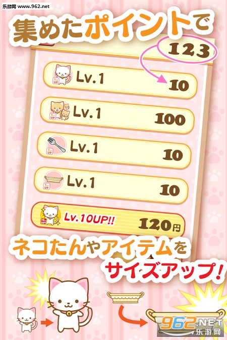 在30秒内另猫咪炭飞出,破坏零食。收集到的点数可以升级猫咪炭或者道具的尺寸。无论你是喜欢喵星人,还是单纯的只想享受闲暇时光,本作都可以成为你生活中的调剂。