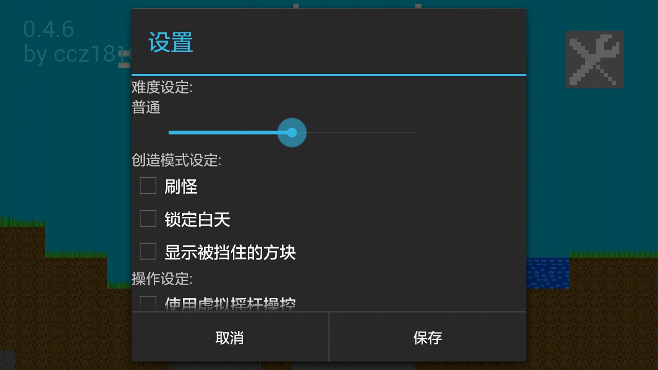 原创安卓沙盒游戏《方块征途 Blocks》是一款休闲游戏,有点类似横版的《我的世界》,截至0.4.5有127种方块,超过300种物品,创造/生存/挑战三个模式,约50种生物,10余种矿产,四大BOSS,支持能量石电路系统和材质包,支持按键/虚拟摇杆操作。