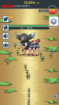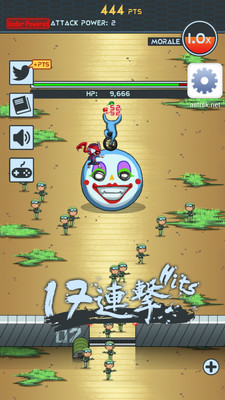 游戏有着典型的日系恶搞漫画风格,各种奇行种外星人也是槽点慢慢,让你哭笑不得的拿起武器进行战斗,玩法简单,你能在各种不同的怪物手中守住这最后的防线嘛?