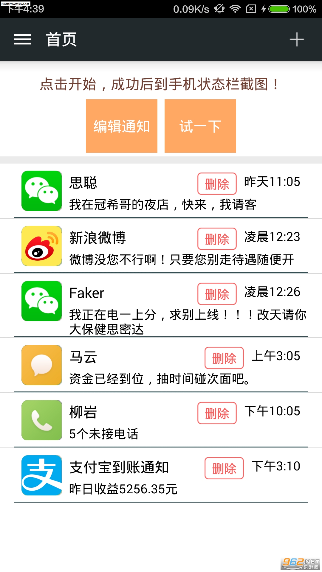 装逼是一种艺术,别人已经在装了,你也不能落后!这是一款可以自定义给自己发送通知消息的软件,根据自己的设定发送不同的通知到手机状态,截图装逼用。一条条牛哄哄的通知告诉好友你早已纵横江湖深藏功与名!