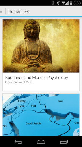 通过应用,Android 用户可以浏览课程名单,参与课程,观看视频讲座,也可以下载后离线观看。而且用户登陆后还可以收到即将开课的通知。