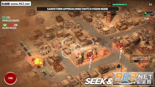 通过由真实世界的世界格局和热成像摄像头样式的启发,这个游戏使你坐在特别行动的无人机操作员的位置上。你必须来执行一系列的命令并使用高科技装备、战术和技巧以及炮火优势来打击敌人的地盘,而这一切只需要你用你的指尖完成即可!