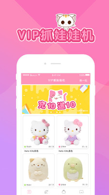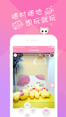 《VIP抓娃娃机安卓版》这是一款抓娃娃达人必备的手机抓娃娃软件。软件操作简单,延迟低,抓中率高,给你真实全景的操作体验,让你足不出户就能感受抓娃娃的乐趣,而且娃娃每天换新,支持全国包邮。每天登录还会送游戏币。感兴趣的用户可以下载APP体验!