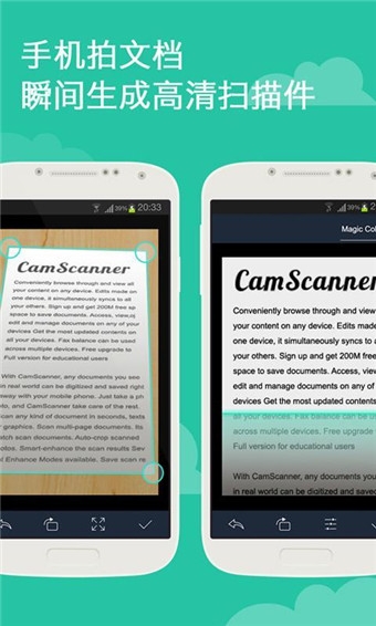 扫描全能王,提供文档扫描、存储、管理、分享、交流、协作、同步的一体化解决方案。将手机变成随身携带的扫描仪、传真机、PDF转换器、Text文本提取工具,和文档共享协作平台。