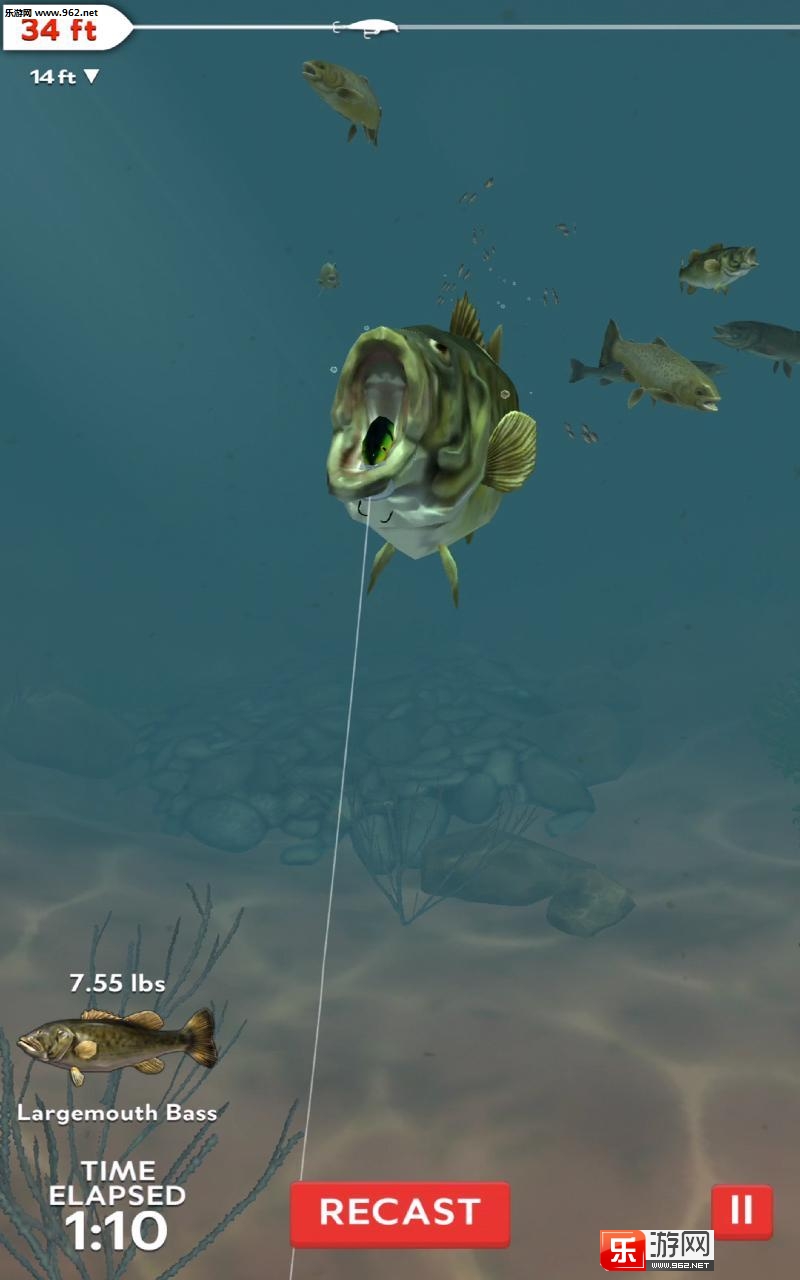 游戏中你可以自由地掌控你的钓渔船,找到鱼儿最多的地方,通过游戏的提示即使你是一个初学者,也能变成专业的钓鱼人士,有十个品种的鱼饵(顶部、浅、深、底部)可供选择。由于完全采用3D图像,让你如临其境。