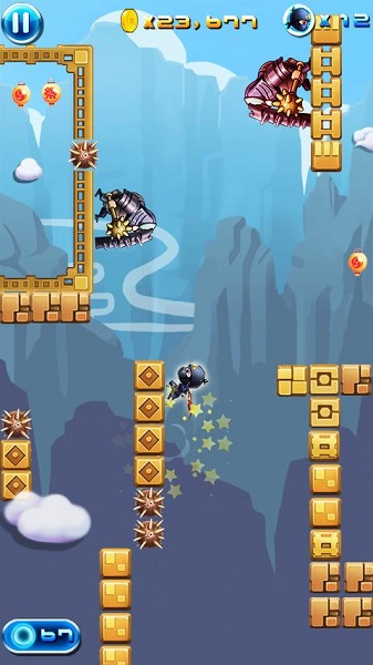 《忍者冲刺 Ninja Dashing》作为一个优秀的忍者,你需要左,右翻滚,通过不同的障碍,避免撞击,以及杀死敌人。向上冲刺是唯一的方法,让您的生活不在只是等待,来吧,让我们开始忍者的奇幻之旅。