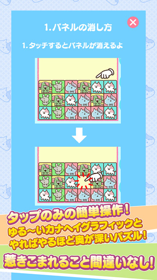 至于游戏规则,该作基本和时下比较有人气的《消灭星星》差不多,点击消除掉两个或以上数量的相同图案方块即可得分。若它们上方还有其他方块存在,就会落下来填补空缺;要是有一列方块被全部消除掉,原本位于它后方(右侧)的剩下几列就会与其前面的方块合并。