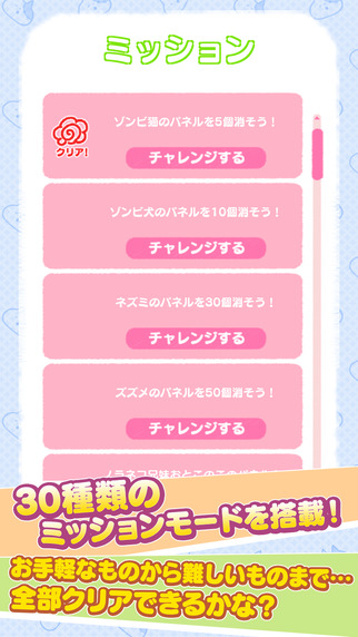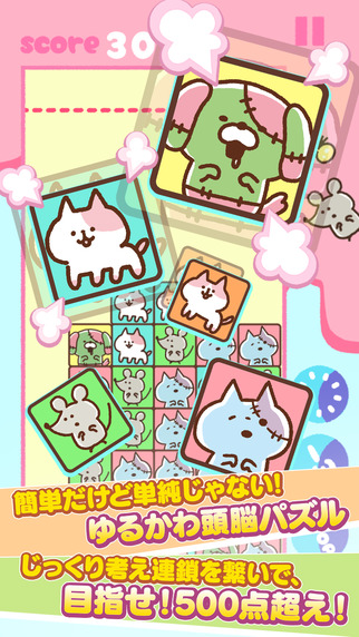 游戏中出现的消除对象全员均出自同名泡面番,那些猫猫狗狗小老鼠的画风非常可爱,让人完全感觉不到僵尸的可怕,反而是萌点满满。玩法(或者说游戏目标)也非常简单,就是点击消除刷高分。