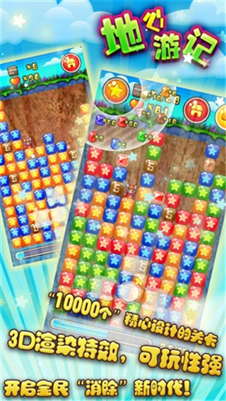 游戏来自于2010年,距离科幻大师凡尔纳的小说《地心游记》出版已经有两百多年了,在伦敦国家博物馆里,一个年轻的研究员在一本探险日志的夹层里 发现了一张羊皮纸,只要找出4个相同的砖块排一起,它们就能Happy得打滚。用户在游戏中购买的游戏币“钻石”仅限于在此应用中使用。