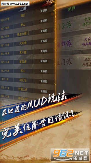 将昔日独具魅力的MUD玩法完全继承,以数十万妙笔生花的精彩文句,通过行云流水的描述,将游戏的地图、人物、玩法、战斗以淋漓尽致的方式描述展现出来,交由玩家用天马行空的想象力来代入到风起云涌的非凡江湖。