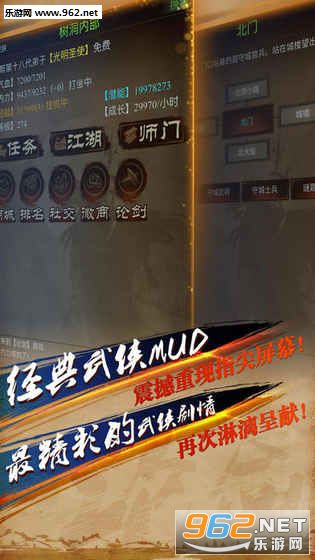 2016年次世代MUD手游大作压轴来袭!颠覆传统!纯文字战斗!经典武侠MUD再次重现!尝试5分钟,通过博大精深的文句所带来的无穷想象,进入极具沉浸感的武林江湖,亲身领略武侠小说描述般扣人心弦的恩怨情仇,让你再也放不下的武侠游戏!