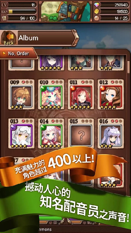 通过战斗和探索成长并强化英雄卡片的正统RPG手游~以稀有等级的英雄来成长,成长的英雄可变身为三个阶段喔!
