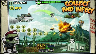 飞翔的僵尸是一款非常有趣的卡通画风一直闯关手游,游戏中玩家将扮演僵尸,你的目标是把僵尸病毒散播到整个美国大陆,游戏提供100个任务需要完成。侵略美帝的任务就交给你了!