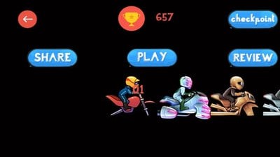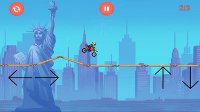 竞速狂飚,跳跃,在各式复杂危险的地形障碍中完成任务, 这就是障碍摩托给您带来的暴爽体验!游戏的画面清晰明了,控制容易上手,摩托可以向前向后,飞起来以后还可以在空中翻滚!但是要得好需要非常高的技巧!据说一般人是玩不过第二关的!