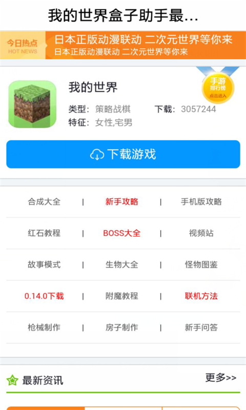 我的世界盒子助手最新版是一款为玩家量身打造的游戏攻略应用,内涵丰富的攻略、视频、资讯、数据库等内容,让玩家能够更快的入手游戏全方位内容。还有更多你不知道细节,快来一起体验吧!