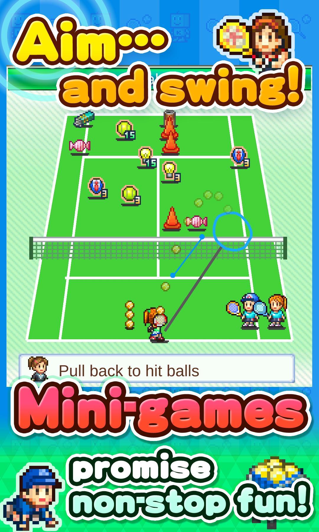 《网球俱乐部物语(Tennis Club Story)》是Kairosoft Co.,Ltd开发的一款模拟经营类游戏。玩家们将扮演一名网球俱乐部的经营人,为了让这家俱乐部能够更加优秀以及强大,玩家们需要招募各种不同潜力的网球选手,根据不同的特质选手来针对训练,然后让他们参加各种联赛,不断吸引各种赞助商、强力选手加盟,向世界第一网球俱乐部发展。