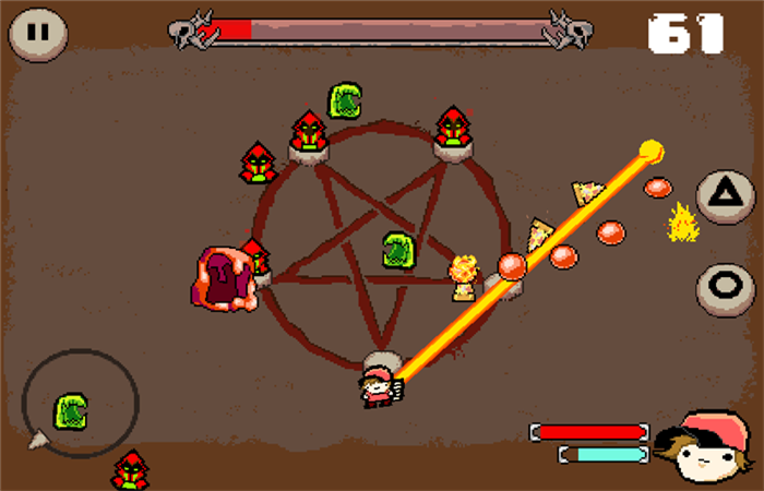 《停止那仪式》的玩法很简单,但是一上来就有特别高的难度,游戏里的攻击方式也比较特别,很有新意。一个有关送披萨的小哥尝试停止邪恶仪式的游戏。