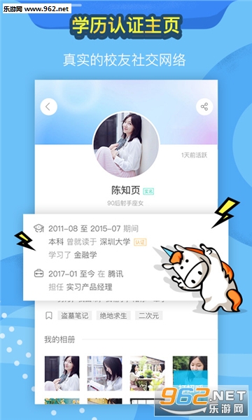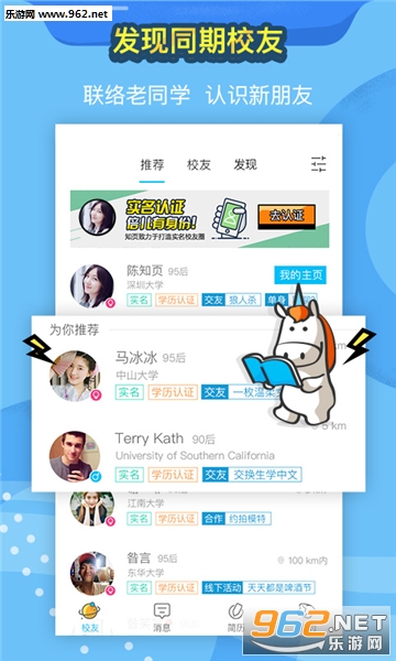 认证学历,发现同期校友。完善个人主页,查看附近的人,认识新朋友。