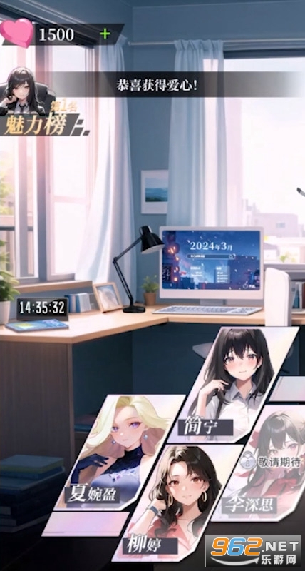选择角色:玩家首先需要在游戏中选择心仪的女孩角色,开始一段全新的恋爱故事。