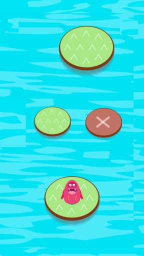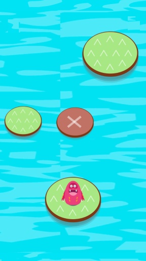 玩家需要帮助他们从水里跳到路面上。 看到他们身前的的“X“键按钮了吗,你需要点击“X”来移动和控制他们跳跃的高度和力度,从而使他们从荷叶上安全的跳到木板上。