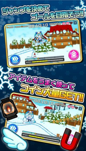 《奔跑吧初音2016新版ios汉化版》本款跑酷游戏采用时下最流行的滑雪板模式,让你感受到一个全新的系统玩法,同时玩家在游戏进行中时,还能查看其他玩家的挑战分数哟~!