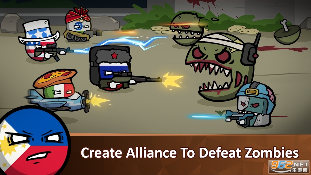 “Countryballs - Zombie Attack”让您沉浸在一个被成群的不死生物占领的悲惨世界中。当你踏上一段扣人心弦的旅程时,人类的命运悬而未决,与世界各地的国家结成联盟,建立一支强大的军队,并对抗无情的僵尸威胁。