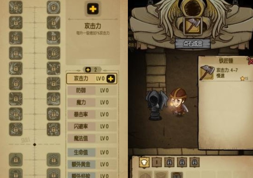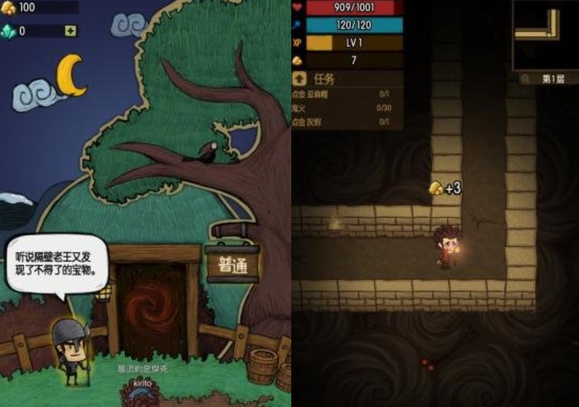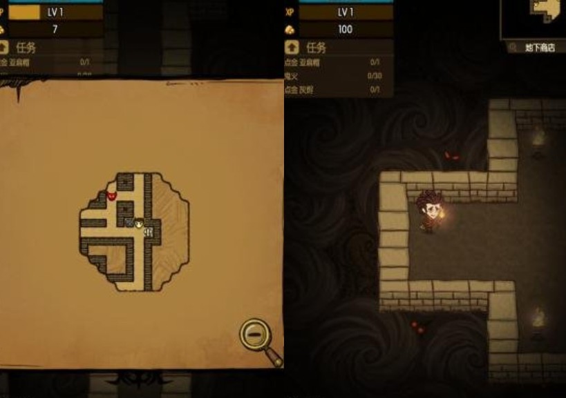 游戏的玩法就是一遍遍进洞,一开始在商人处购买足够的装备包括药水之类,之后一层层进入洞窟,寻找逃脱卷轴回城,这期间需要为你的装备点金,不管是使用逃脱卷轴还是挂掉,都只能带走金色装备哟,因此,这里的生命相当宝贵,你需要不断计算如何避开敌人用最少的损耗拿到装备与补血药水,看似简单的小游戏,其实非常考验策略性。