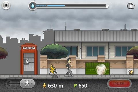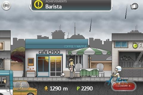 游戏的玩法非常简单,通过两个虚拟按钮进行操作:左下角的是移动按钮,能够控制主角的左右移动;右下角的是功能按钮,能够控制主角跳过障碍物、拿起东西、购买汉堡包等等。