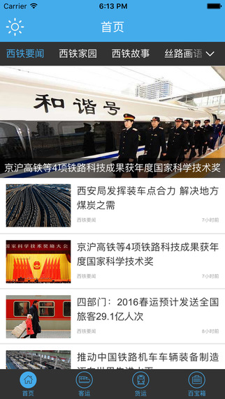 今年春运,西安铁路局“西铁资讯”移动客户端正式上线运行,具有资讯服务、票务车次查询、货运业务查询、吃喝玩乐百宝箱、天气预报、信息交互六大功能,为旅客提供更丰富的春运信息,帮助旅客解决出行难题,方便春运出行。