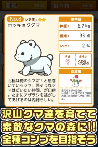 《小熊的养成计划》是由Chronus F Inc.带来的一款小熊养成类游戏,你需要购入小熊,然后通过食物环境控制等等来帮助小熊的成长。当然每一只小熊的成长都不能离开你悉心的照料,所以说,喜欢小熊的朋友千万不要错过这款游戏。来养可爱的小熊吧。