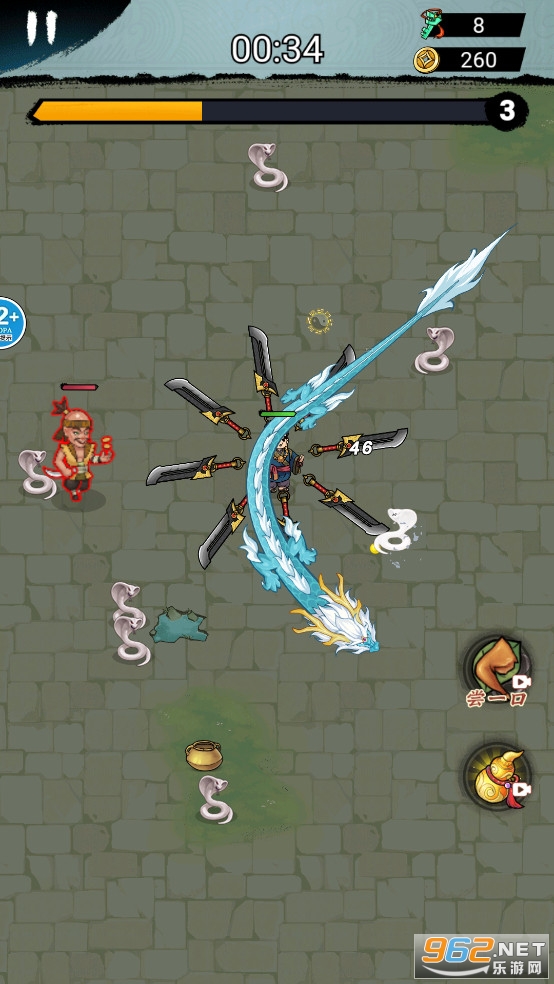 这是一款休闲闯关类小游戏,转刀修炼独门武学,不断杀怪获取角色经验,提升角色等级,修炼武学提升战斗力,快来激情杀怪,将它们统统消灭吧。