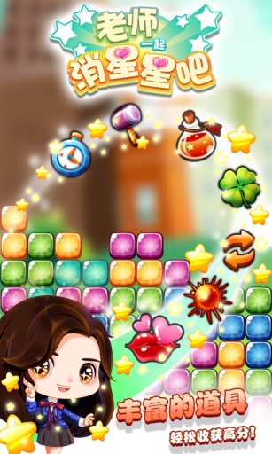 《老师一起消星星吧》是一款非常不错的休闲消除类的小游戏,游戏中有着小清新的Q版画风,呆萌的人设美不胜收,喜欢消除的小伙伴就来下载玩耍体验一番吧!