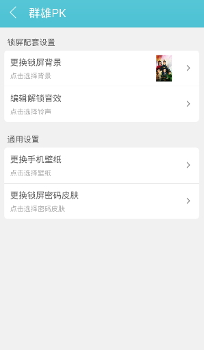 2.点击详情界面右上角的魔棒按钮:编辑自定义文字;:更换锁屏背景;编辑解锁音效;更换锁屏密码;更换手机壁纸,多种功能随您DIY.