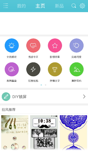 1.点击详情界面左上角的田字按钮,再点击主页按钮,进入主页界面,就可以找到,diy锁屏按钮,点击进入功能。