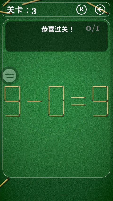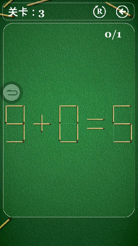 这些等式方程中只需要我们开动脑筋,动一动手指,按照提示移动一根或两个火柴即可时等式成立。另外有火柴棍形状关卡。好吧,让我们的脑筋动起来吧~