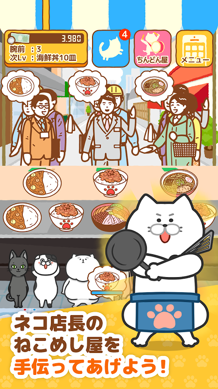 《猫饭屋(ねこめし屋)》是一款模拟经营类的手游,玩家在游戏当中将会扮演一名看起来并不可靠的猫咪店长,并且帮助他经营自己的小吃店。