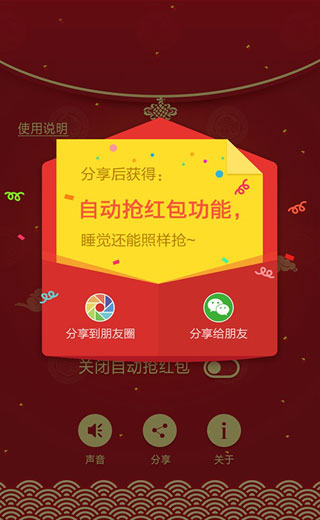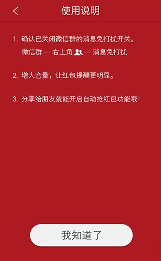 软件再强大也有弱点,本款自动抢红包的弱点就是锁屏状态是没有办法自动抢到红包的,那么问题来了,错过的红包基本上都是在不玩手机的状态,所以,所谓的自动抢红包软件好像也不是那么必要。