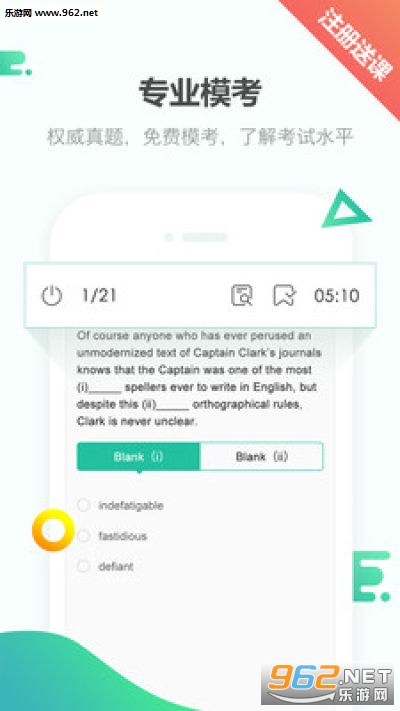《GRE题库安卓版》是一款非常实用的在线模拟考试app,这款软件能够迅速提升你的英语能力,你可以通过多种训练模式快速提高自己的英语应试水平,更可以让你在这款软件中享受到全新仿真的专业模拟考试哟,感兴趣的小伙伴还在等什么?快来下载体验吧!