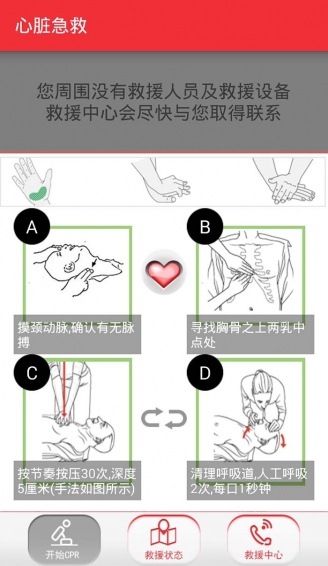 《心脏急救》是一款应用于日常急救医疗的app,让你在等待救火车的同时为病人带来更快的救治,把握每一份每一秒,不错过,心脏病的发作总是那么的突然,这款app,可以帮助你拨打救助热线同时发送求助信息,让你附近的医护人员即时到来提前一步救治。