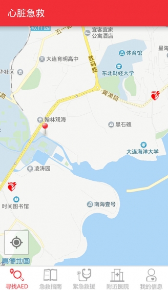 用户平时可以在软件中根据自己所需的目的地查找附近的AED或医院。